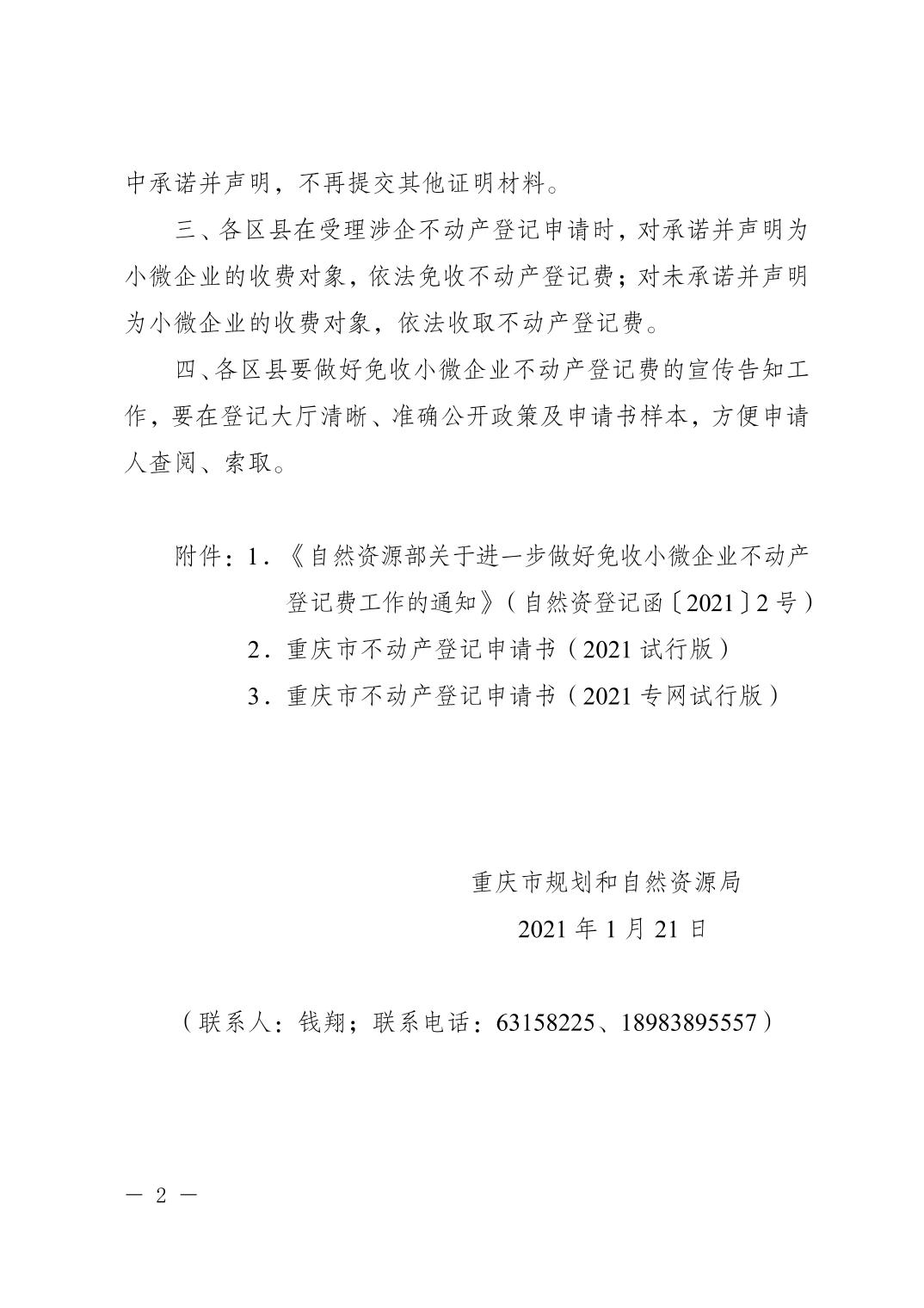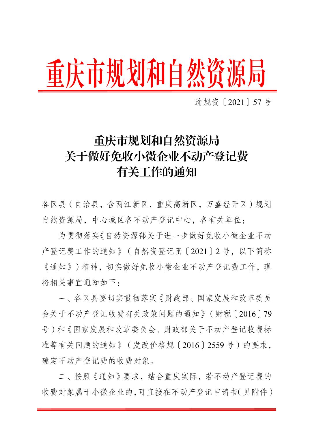 重慶市規(guī)劃和自然資源局關(guān)于做好免收小微企業(yè)不動(dòng)產(chǎn)登記費(fèi)有關(guān)工作的通知