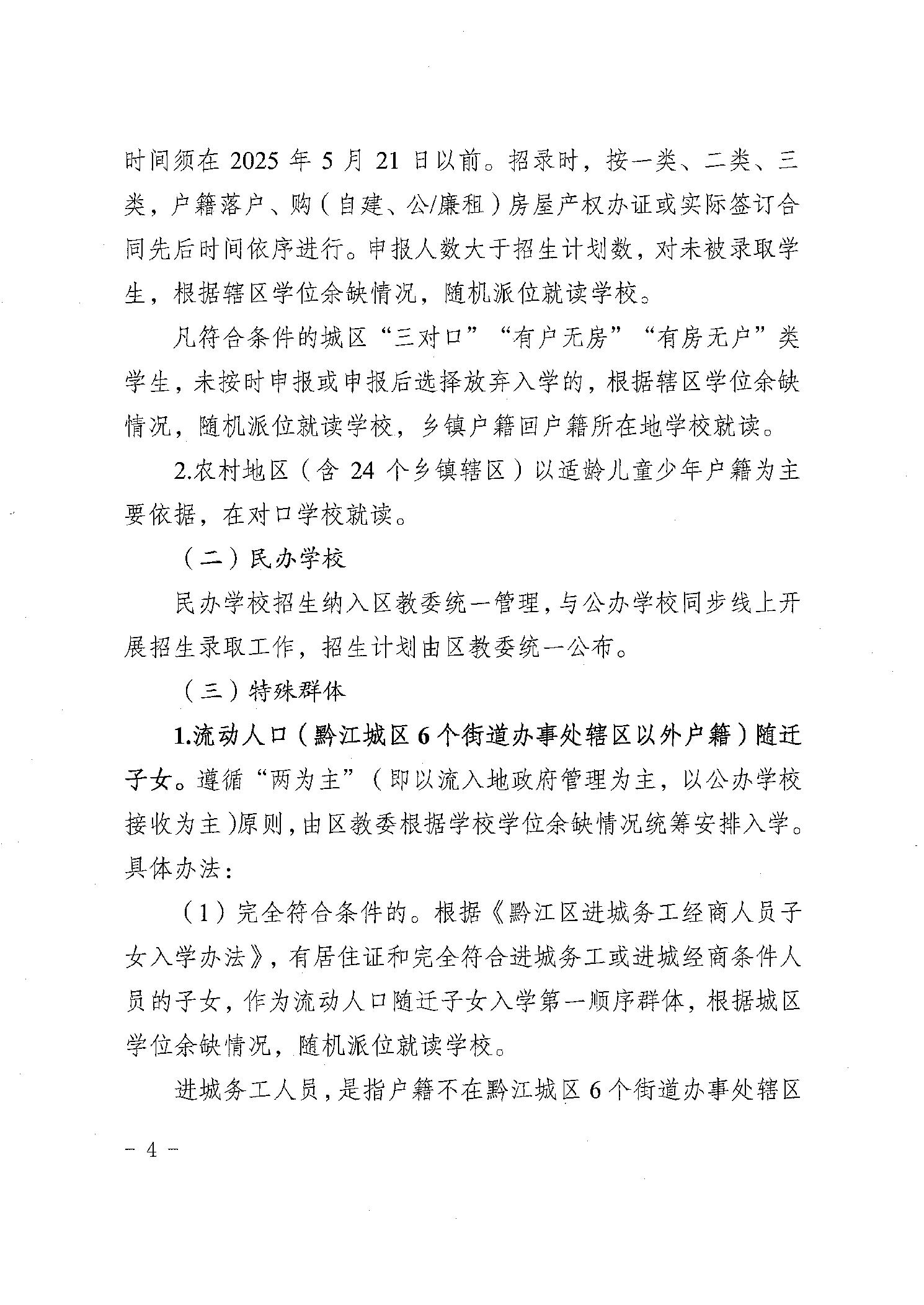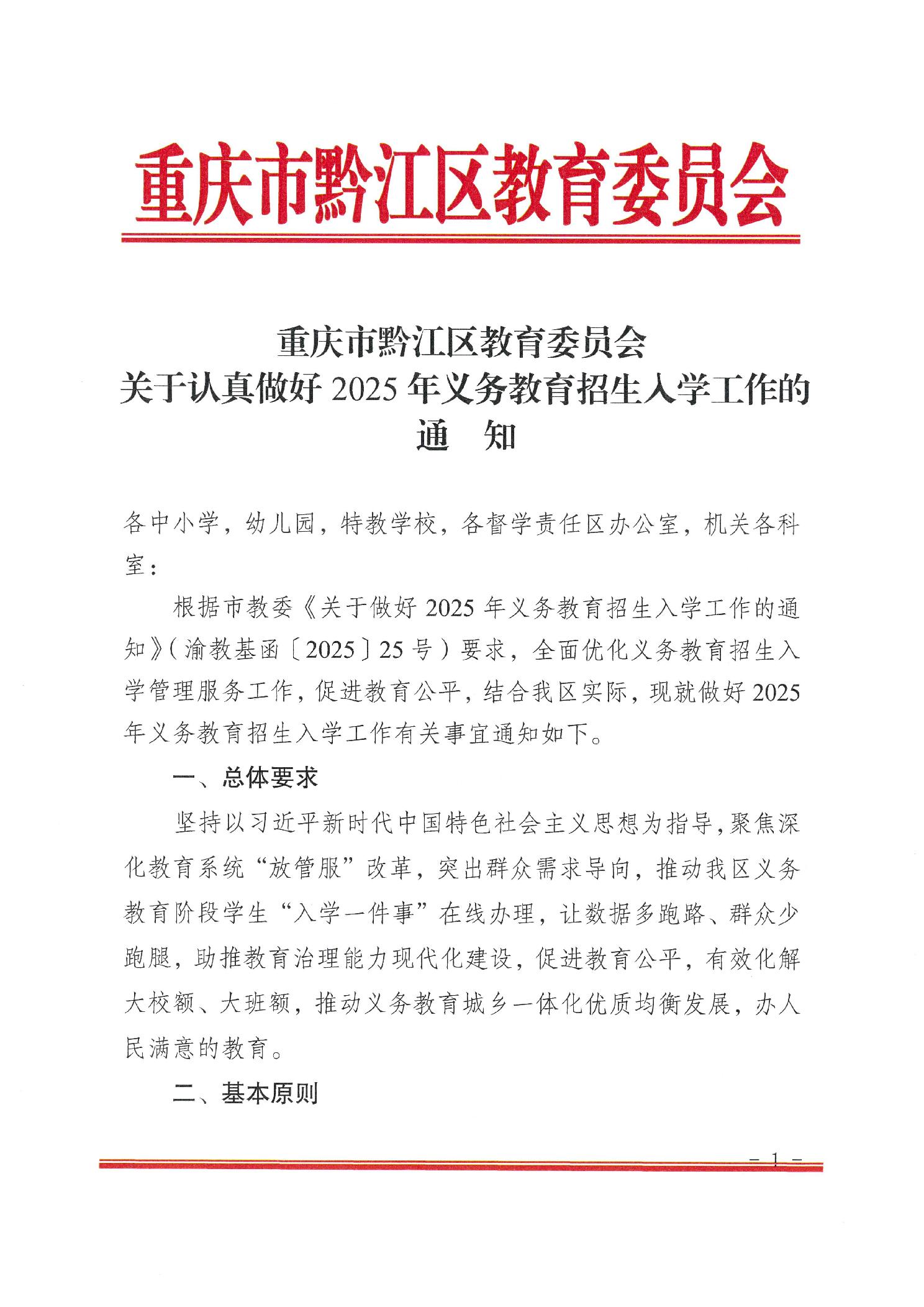 重慶市黔江區教育委員會關于認真做好2025年義務教育招生入學工作的通知">