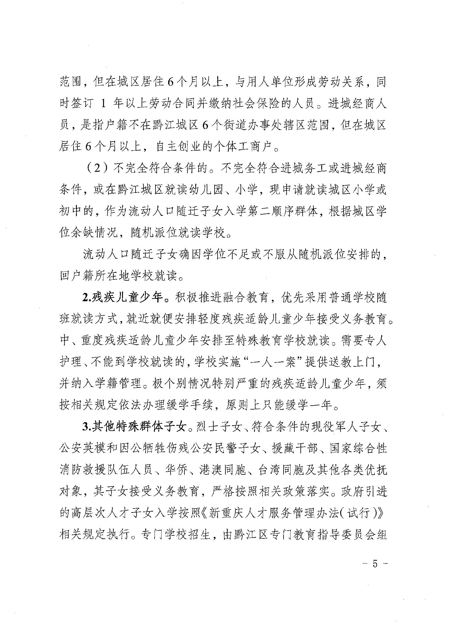 重慶市黔江區教育委員會關于認真做好2025年義務教育招生入學工作的通知