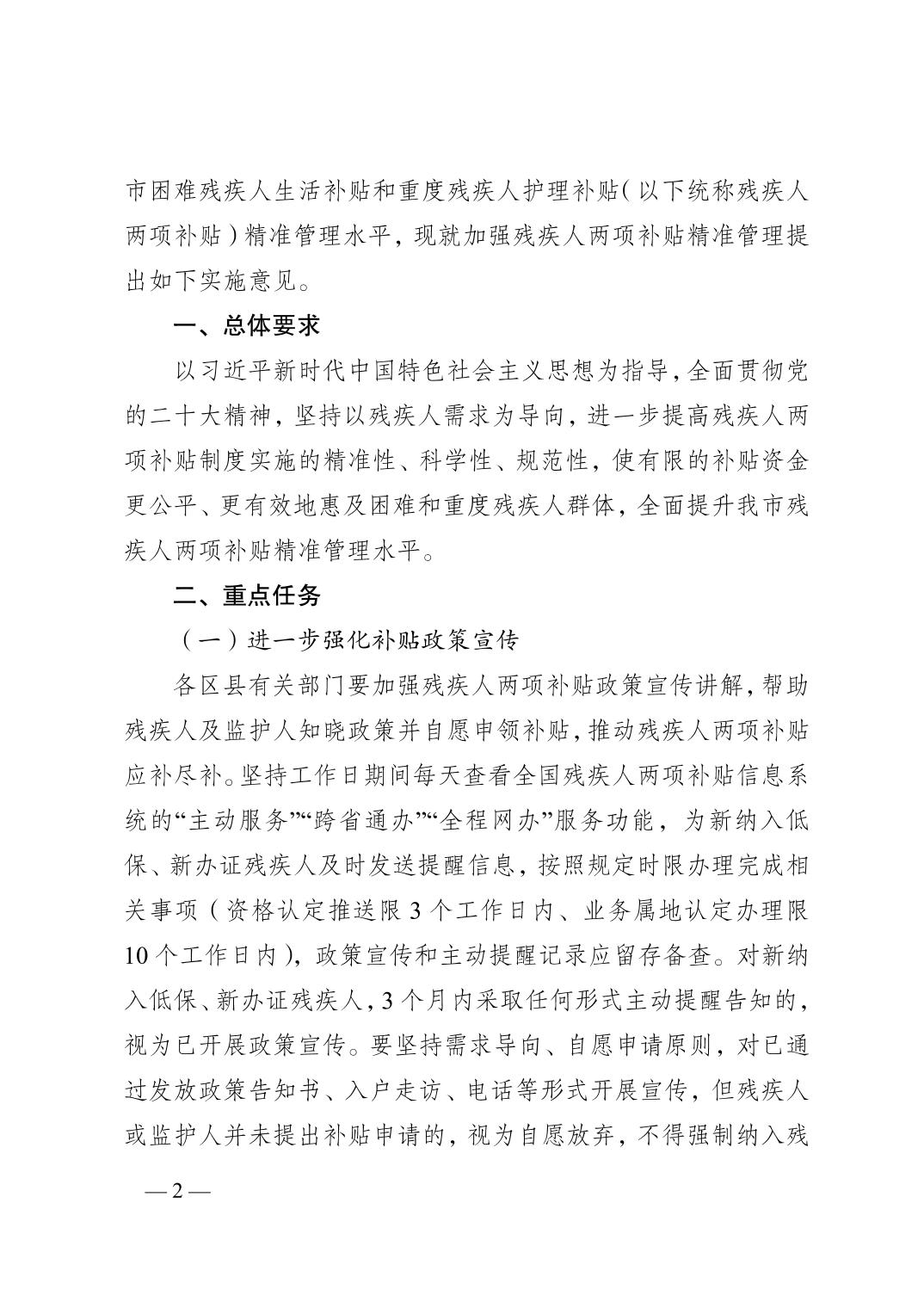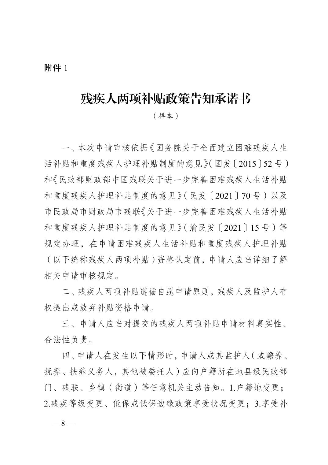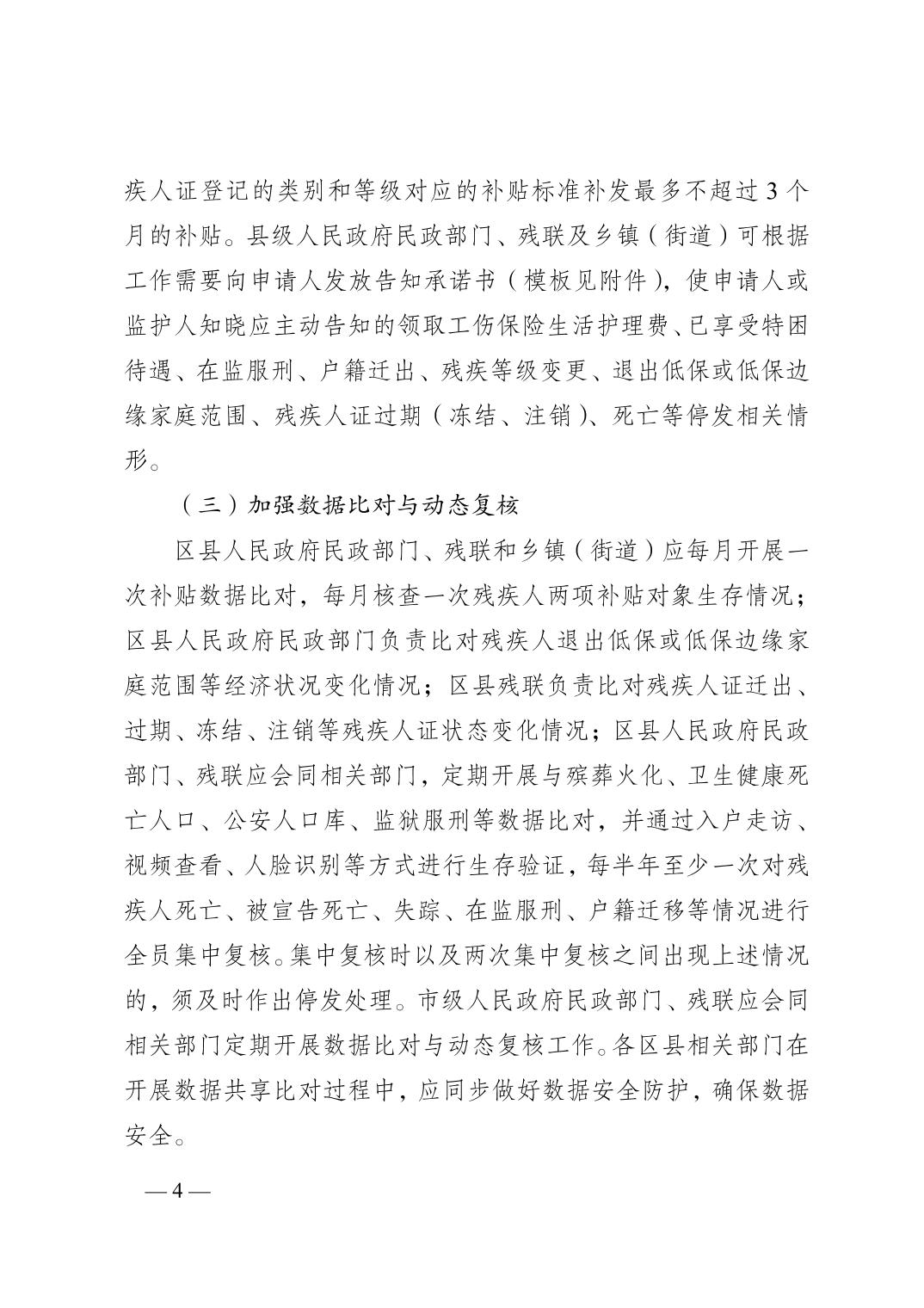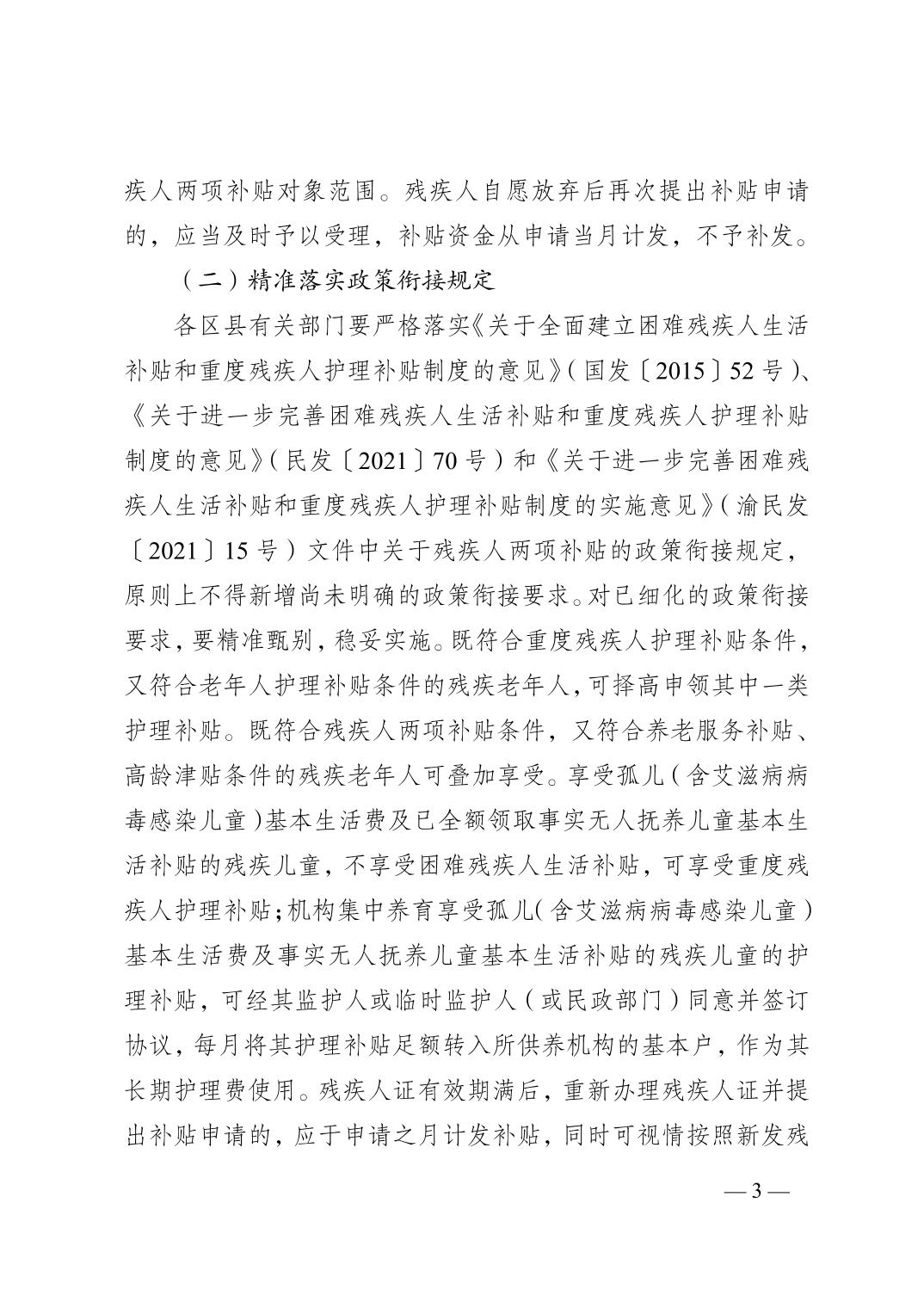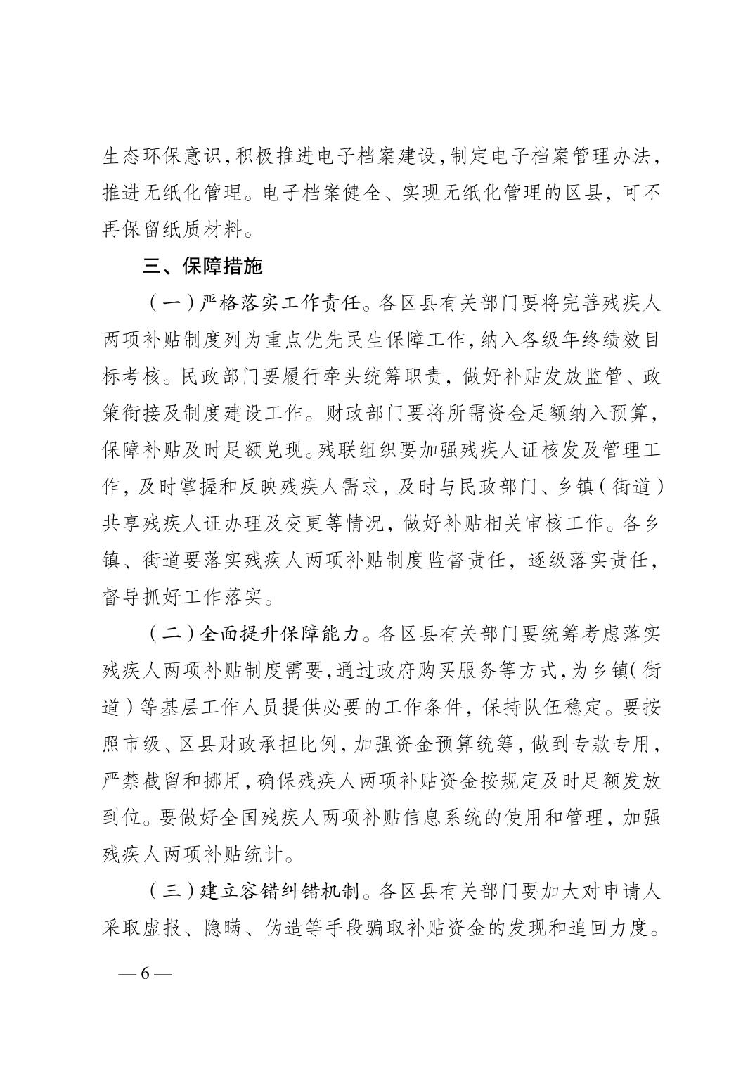 重慶市民政局等三部門關(guān)于加強殘疾人兩項補貼精準管理的實施意見