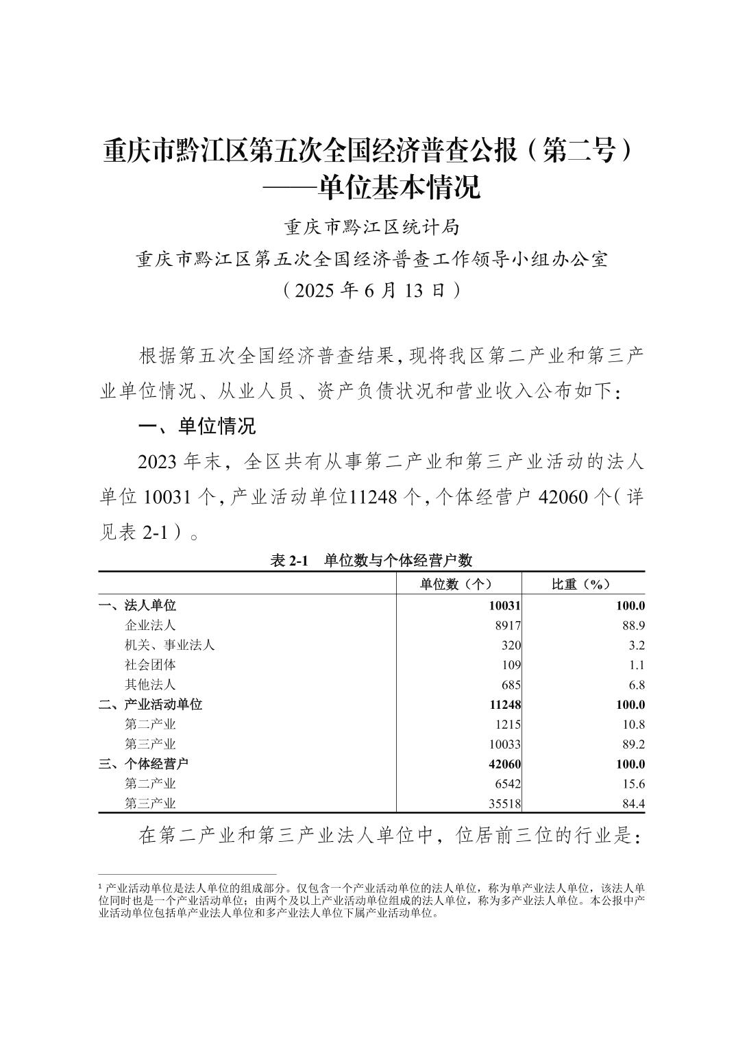 重慶市黔江區第五次全國經濟普查公報(第二號)">