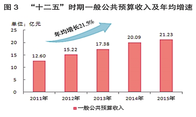 財(cái)政收入保持平穩(wěn)。全年一般公共預(yù)算收入21.23億元,比上年增長5.7%。其中,稅收收入14.19億元,下降1.8%。一般公共預(yù)算支出54.32億元,增長11%。其中,城鄉(xiāng)社區(qū)支出4.99億元,增長12.4%;社會保障和就業(yè)支出4.6億元,增長11.9%;教育支出10.52億元,增長12.1%;農(nóng)林水支出9.17億元,增長24.3%;一般公共服務(wù)支出4.42億元,下降15.4%;醫(yī)療衛(wèi)生與計(jì)生支出5.29億元,增長19.9%;文體與傳媒支出0.69億元,增長30.5%。
