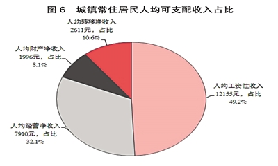 全年城鎮(zhèn)常住居民人均可支配收入24672元,比上年增加2284元,增長10.2%。其中,人均工資性收入12155元,增長8.9%;人均經(jīng)營凈收入7910元,增長13%;人均財(cái)產(chǎn)凈收入1996元,增長15.3%;人均轉(zhuǎn)移凈收入2611元,增長4.5%。全年城鎮(zhèn)常住居民人均消費(fèi)支出18202元,比上年增長10%。