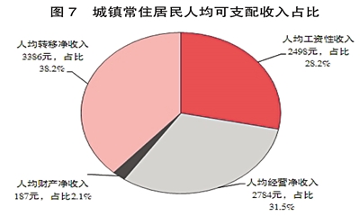 全年農(nóng)村常住居民人均可支配收入8855元,比上年增加977元,增長12.4%。其中:人均工資性收入2498元,增長9.9%;人均經(jīng)營凈收入2784元,增長18.1%;人均財(cái)產(chǎn)凈收入187元,增長20.4%;人均轉(zhuǎn)移凈收入3386元,增長9.5%。農(nóng)村常住居民人均生活消費(fèi)支出7400元,比上年增長11.8%。