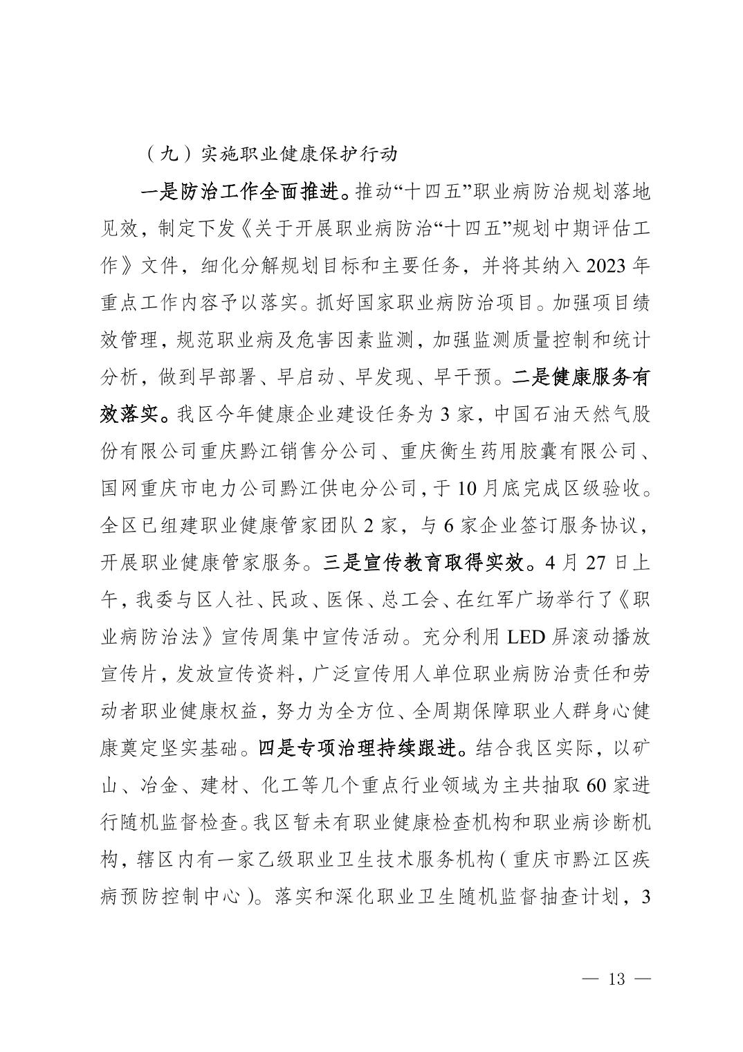 黔江愛衛文〔2025〕1號關于2023年健康中國黔江行動監測評估實施進展情況的報告">