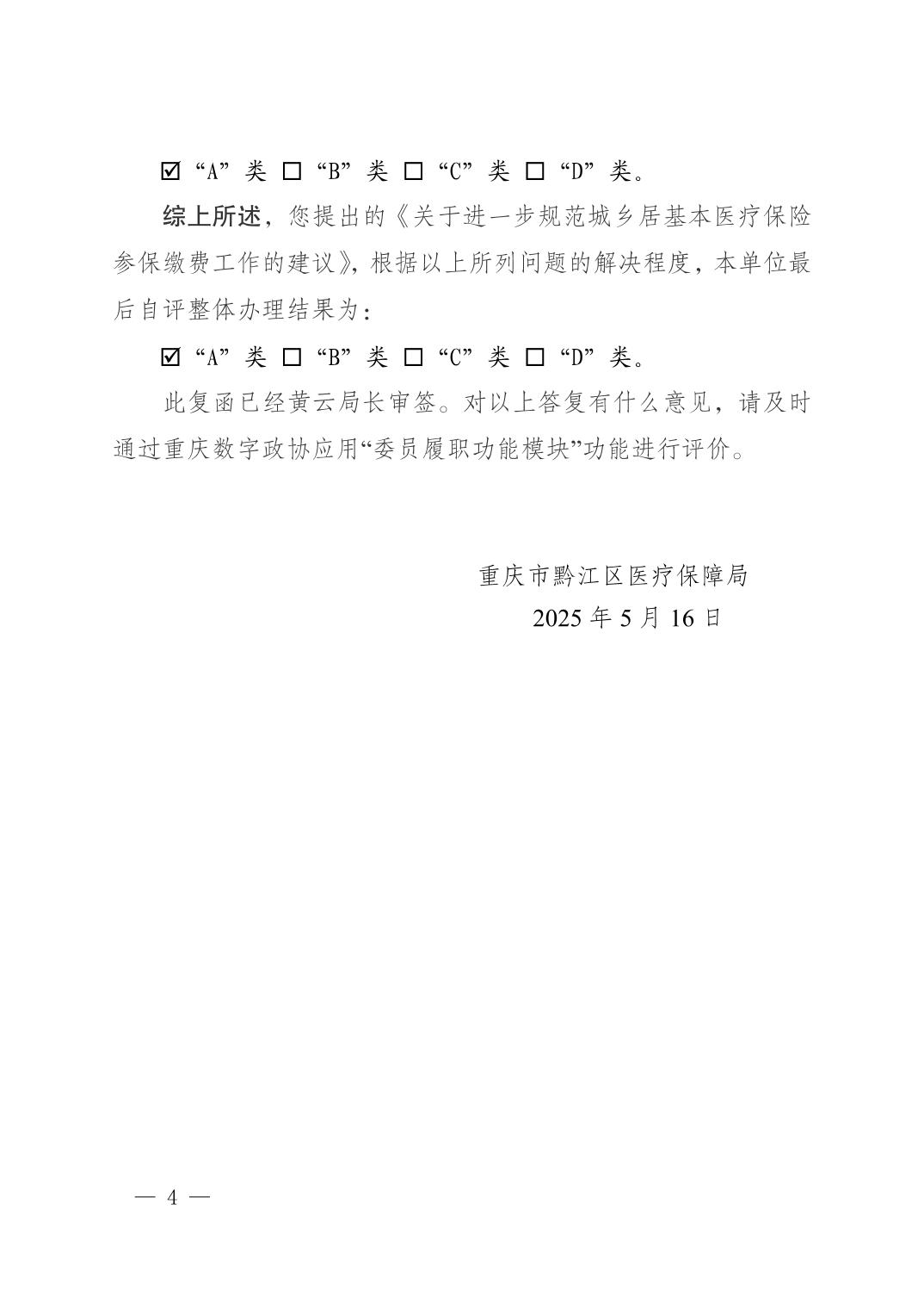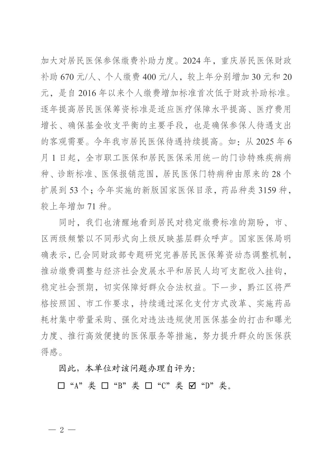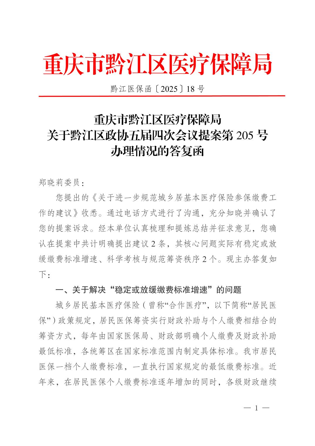 重慶市黔江區醫療保障局關于黔江區政協五屆四次會議提案第205號辦理情況的答復函