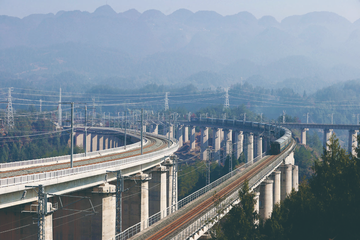 近日,列車行駛在黔張常鐵路重慶黔江轄區內的鐵爐堡特大橋上。黔江區位于武陵山腹地,大山阻礙了當地經濟社會發展。近年來,黔江區相繼修建了渝懷鐵路、黔張常鐵路、渝湘高速公路、黔恩高速公路、石黔高速公路等,渝廈高鐵重慶至黔江段將于今年6月通車。這些鐵路、高速公路與國道、省道、縣道和鄉村公路縱橫交錯,形成了立體交通網,有力推動了當地經濟社會發展和鄉村振興,也成為了大山里一道美麗風景線。